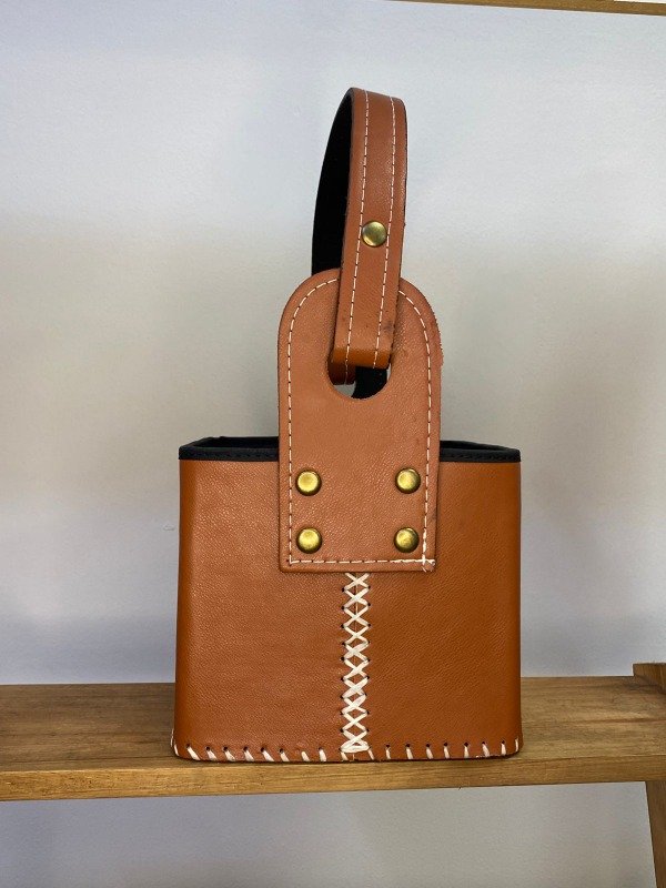 Canasta Matera eco-cuero, con divisor en el medio, super reforzadas con costuras y manija reforzada con remaches